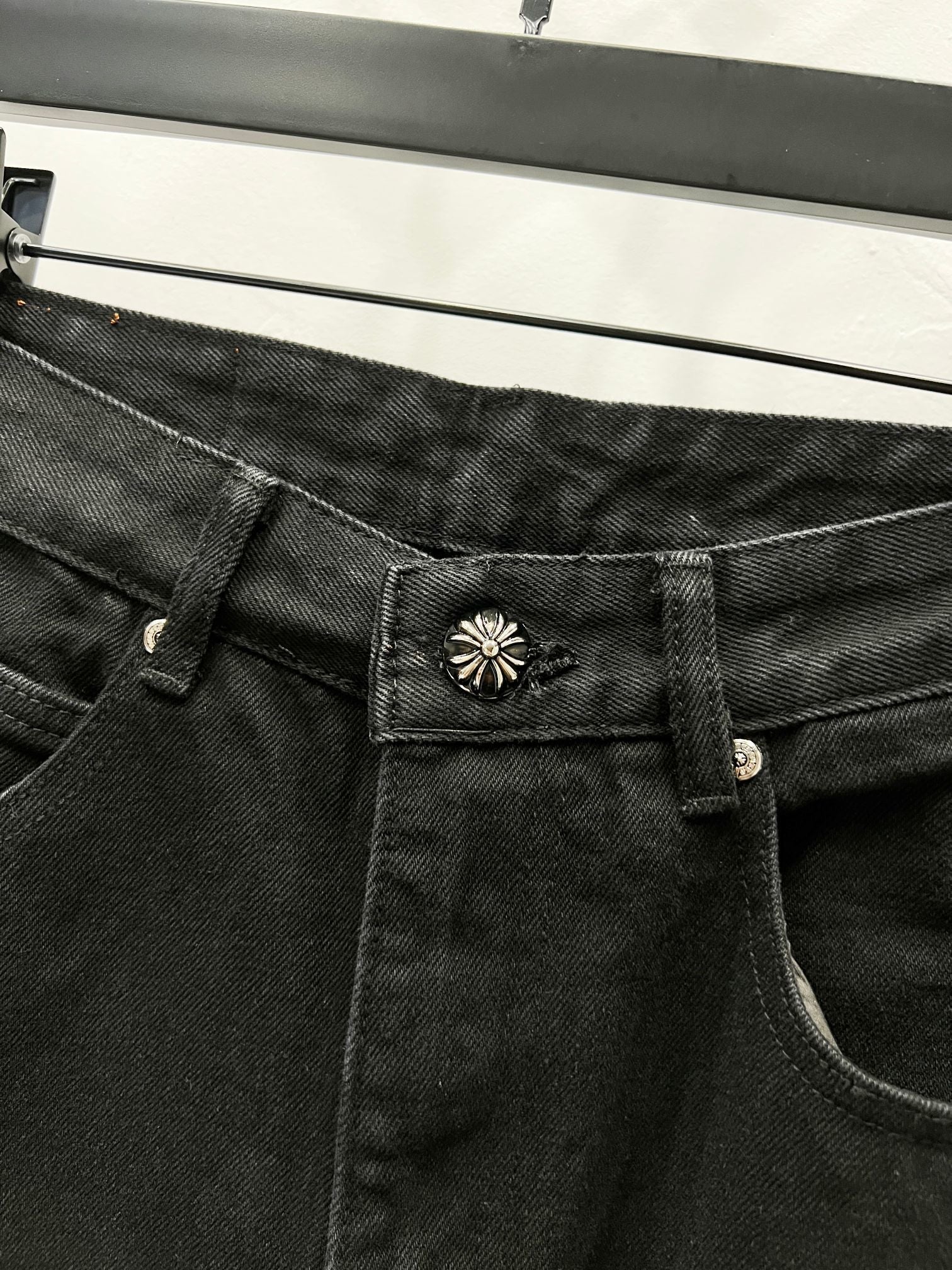 Upgrade your wardrobe with our handmade CH-inspired denim. Each pair is crafted with premium light-wash denim and detailed with custom cross patches for a bold, luxury streetwear look. Perfect fit, durable fabric, and eye-catching design make these jeans a standout piece for any outfit.